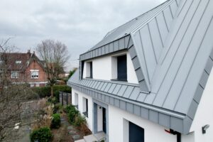 Nous avons réalisé la rénovation complète de cette toiture en remplaçant les anciens bardeaux bitumineux posés sur volige par une isolation performante MIX polyuréthane et
